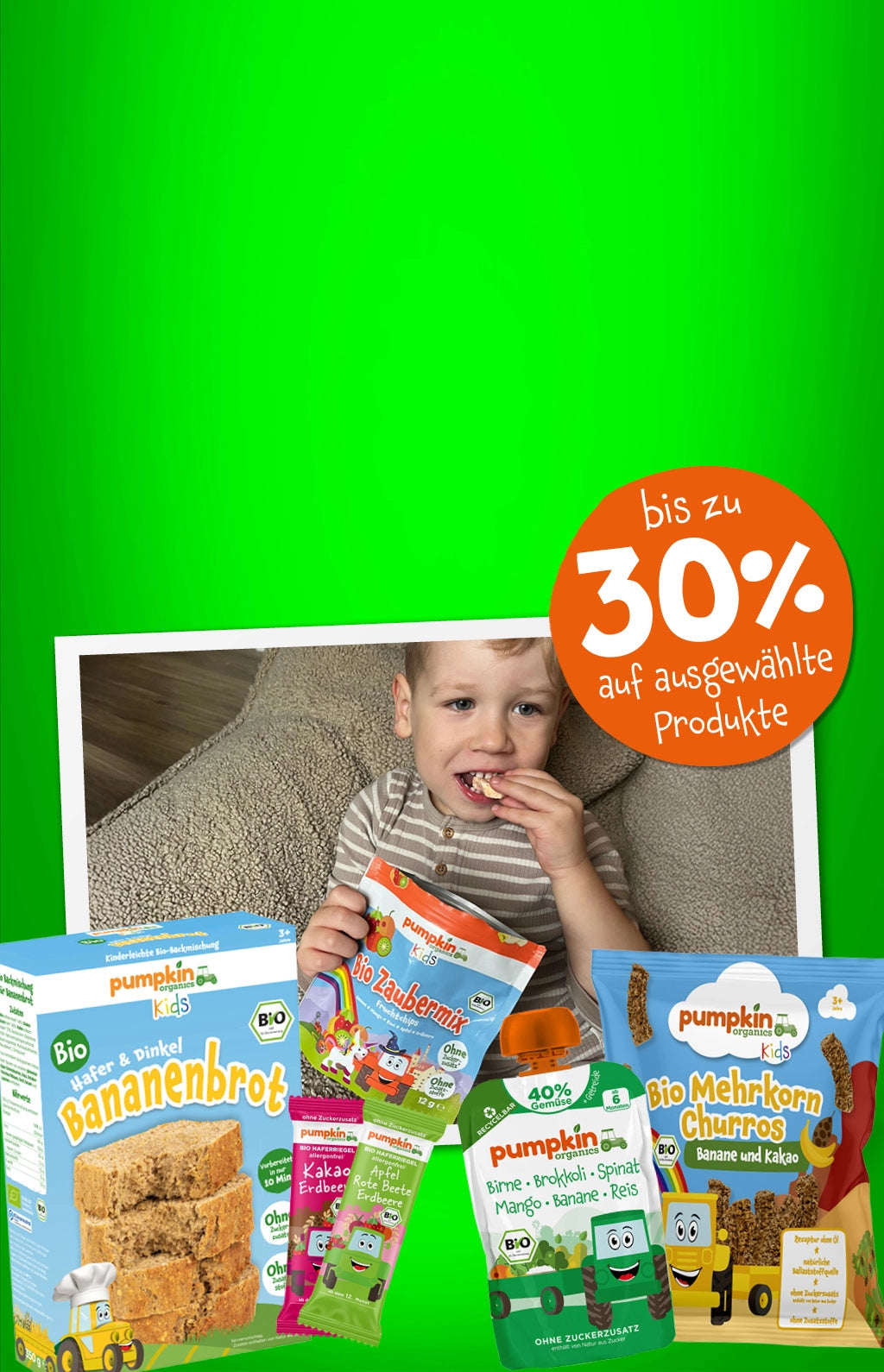 Wir haben Pumpkin Organics mit dem Ziel gegründet, Eltern dabei zu unterstützen, ihre Kinder gut zu ernähren – und mit unseren beiden kleinen Produkttestern nehmen wir dich mit in unsere Welt voller gemüsiger Snacks.