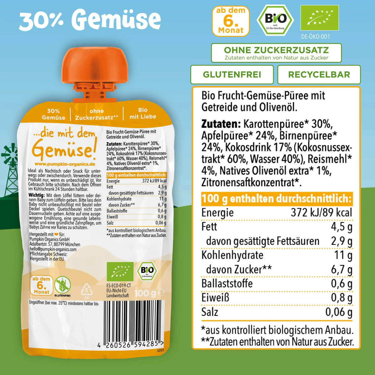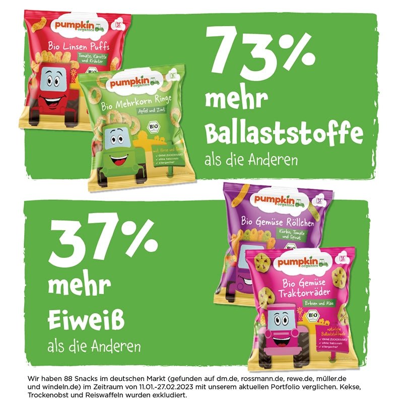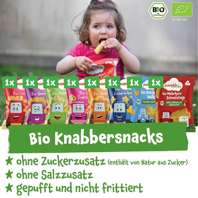 Wir wollen dir mit unserem Probierpaket die Möglichkeit geben, unsere gemüsigen Bio Snacks mit viel Gemüse einzeln zu testen. Und wir freuen uns sehr auf dein Feedback unter hello@pumpkin-organics.com.