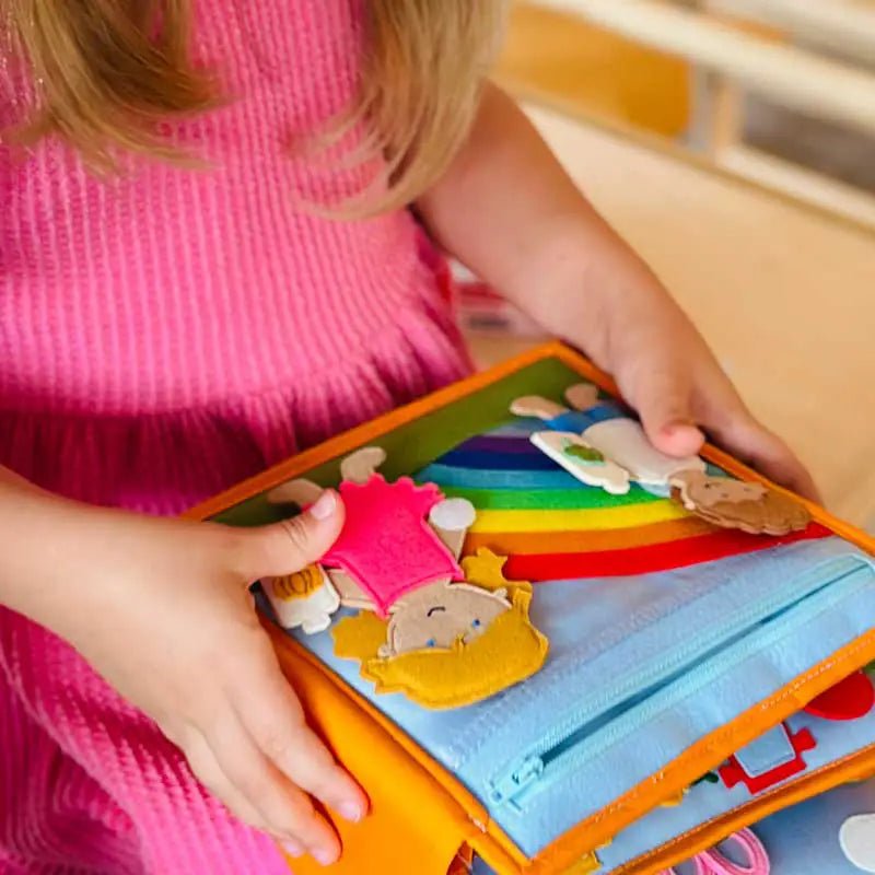 Quiet Books bieten Kindern eine einzigartige Möglichkeit, spielerisch nach Montessori-Prinzipien zu lernen und ihre Feinmotorik, Konzentration sowie Kreativität zu fördern. Durch einfache, aber effektive Aktivitäten können sie selbstständig lernen und ihr Vertrauen in die eigenen Fähigkeiten stärken. Diese Bücher regen die Vorstellungskraft an, ohne laute Geräusche oder Batterien – ideal für ruhige und achtsame Spielmomente. Sie sind vielseitig einsetzbar, sei es beim Spielen zu Hause oder unterwegs, und bieten eine wertvolle Unterstützung beim Erlernen von Alltagsroutinen wie Knöpfen, Reißverschlüssen oder dem Sortieren von Farben und Formen. Quiet Books fördern nicht nur die kognitive und emotionale Entwicklung, sondern bieten auch die Möglichkeit zu kreativen Rollenspielen und Erzählungen, die das Sprachvermögen und die Empathie der Kinder erweitern.